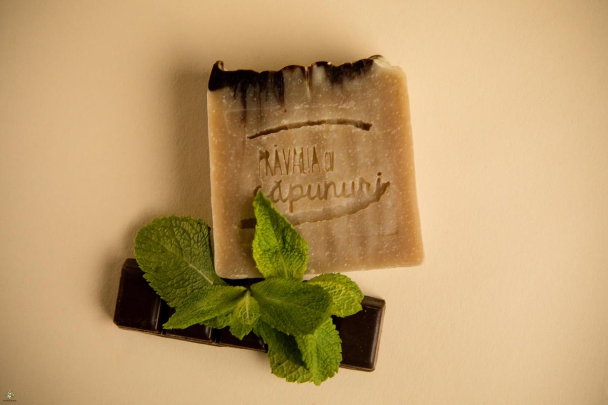 Sapunul "Fresh" cu menta si ciocolata conţine o cantitate mare de antioxidanţi care au rolul de a proteja pielea de efectele nocive ale mediului (radicali liberi, praf, poluare etc.) şi are puternice efecte anti-îmbătrânire. Utilizare: fata, maini, corp Recomandări: ten mixt/gras, acneic Cantitate: 100g±5g ℮ Realizat manual prin metoda la rece! Ingrediente (INCI): OLEA EUROPAEA FRUIT OIL, AQUA, COCOS NUCIFERA OIL, SODIUM HYDROXIDE, HELIANTHUS ANNUUS HYBRID OIL, RICINUS COMMUNIS SEED OIL, THEOBROMA CACAO SEED BUTTER, MENTHA PIPERITA OIL, MENTHA PIPERITA LEAF, POGOSTEMON CABLIN LEAF OIL, ARGILLA EXTRACT, THEOBROMA CACAO SEED POWDER, LIMONENE Referinta CPNP: 2860372 Notificat 06.11.2018