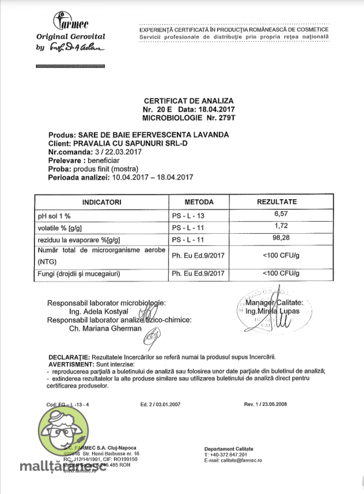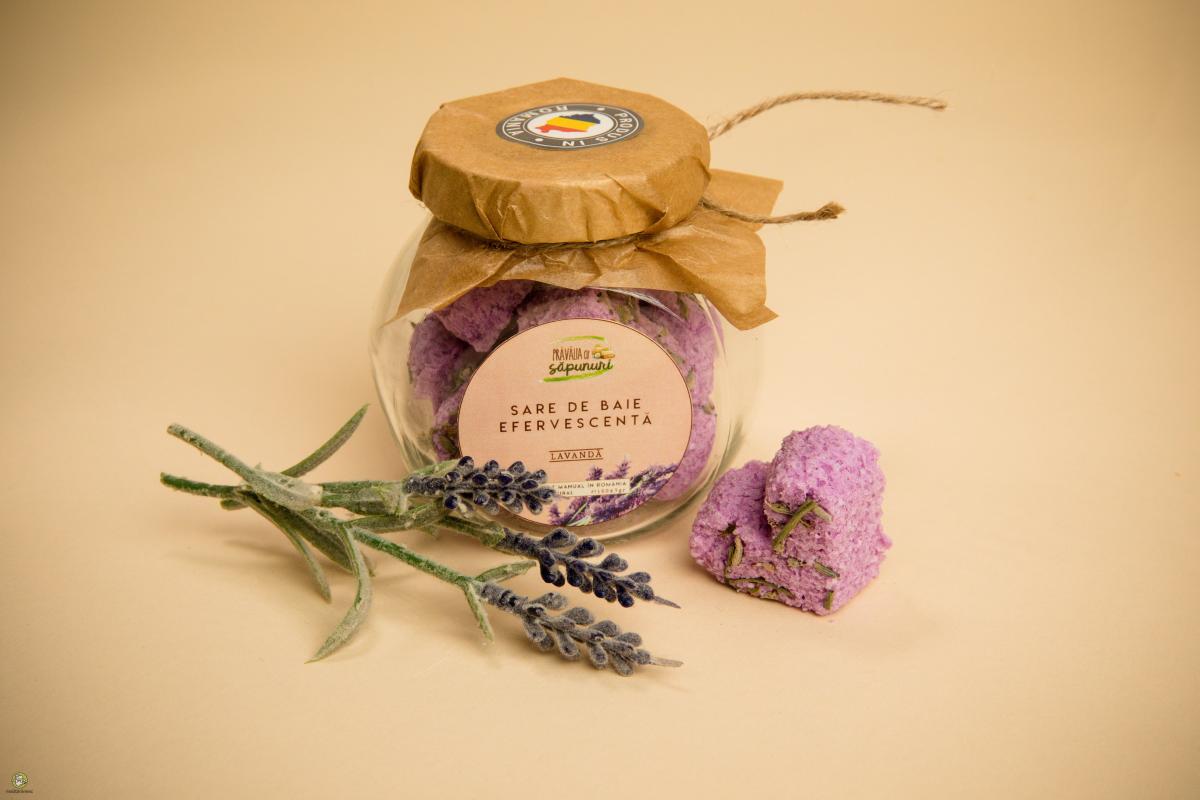 ngredientele din aceasta sare de baie efervescenta cu lavanda au fost alese pentru proprietăţile lor de hidratare și catifelare. Au rol de îndepărtare a celulelor moarte, de calmare şi relaxare a pielii. Descriere Sare de baie efervescenta cu Lavanda: Cu un continut bogat in siliciu, argila violet revitalizează și detoxifică tenul, fiind destinată în special celui sensibil și uscat. Sarea marină este recunoscută încă din timpuri străvechi pentru proprietățile sale curative și de înfrumusețare. Aceasta este bogată în minerale de care corpul și pielea noastră au nevoie pentru a rămâne tinere și sănătoase. Uleiul de migdale dulci conţine din belşug vitaminele E şi D, minerale esenţiale (magneziu şi calciu), pentru un efect puternic emolient, ce-l recomandă în tratarea pielii uscate, crăpate, iritate sau afectate de mâncărimi. Se absoarbe foarte bine în piele. Bicarbonatul de sodiu neutralizează acizii de pe piele. Uleiul esențial pur de lavandă ajută la atenuarea problemelor cutanate și regenerare a pielii, favorizează somnul și calmează sistemul nervos. Beneficii Sare de baie efervescenta: După o asemenea baie nu va fi nevoie să aplicaţi loţiune de corp, pielea va fi moale, mătăsoasă, cu un apect natural, îngrijit Mod de utilizare: Pentru un efect imediat recomandăm a se folosi după duş! Umpleţi cada cu apă şi puneţi 2-3 inimioare efervescente pline de uleiuri aromate şi petale de flori, iar relaxarea poate începe! Cantitate: 100g±5g ℮ Ingrediente (INCI): SODIUM BICARBONATE, CITRIC ACID, SODIUM CHLORIDE, PRUNUS AMYGDALUS DULCIS OIL, TOCOPHERYL ACETATE, ARGILLA EXTRACT, LAVANDULA ANGUSTIFOLIA OIL, LAVANDULA ANGUSTIFOLIA FLOWER, LINALOOL. Referinta CPNP: 2860561. Notificat la data: 06.11.2018