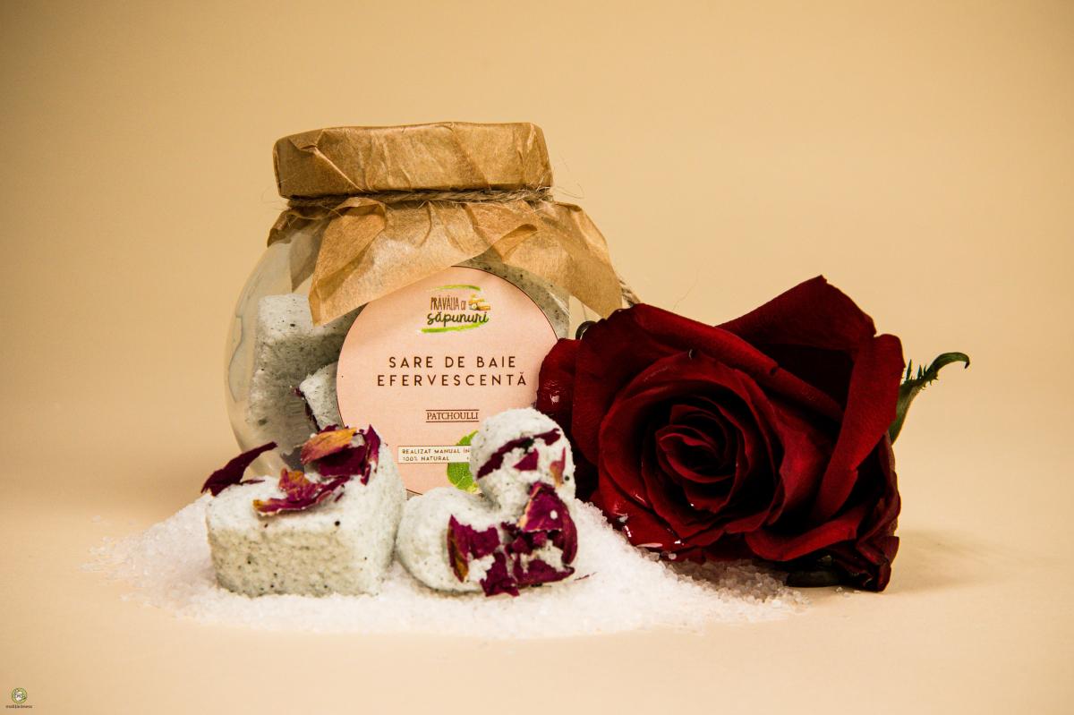 Sare de baie efervescenta cu Patchouli. Ingredientele din această sare de baie au fost alese pentru proprietăţile lor de hidratare și catifelare. Au rol de îndepărtare a celulelor moarte, de calmare şi relaxare a pielii. Descriere Sare de baie efervescentă cu Patchouli: Bogată în minerale și oligoelemente, argila verde este ideală pentru remineralizarea și decongestionarea pielii. Ajută la eliminarea excesului de sebum și a impurităților datorită puterii sale absorbante excelente. Este potrivită în special pentru tenul mixt sau gras. Sarea marină este recunoscută încă din timpuri străvechi pentru proprietățile sale curative și de înfrumusețare. Aceasta este bogată în minerale de care corpul și pielea noastră au nevoie pentru a rămâne tinere și sănătoase. Uleiul de migdale dulci conţine din belşug vitaminele E şi D, minerale esenţiale (magneziu şi calciu), pentru un efect puternic emolient, ce-l recomandă în tratarea pielii uscate, crăpate, iritate sau afectate de mâncărimi. Se absoarbe foarte bine în piele. Bicarbonatul de sodiu neutralizează acizii de pe piele. Uleiul esențial pur de patchouli este o esență foarte apreciată pentru parfumul său puternic și profund, cu note pământii, lemnoase. Acesta conține o serie de principii active cu rol antiinflamator, antiinfecțios, decongestionant venos, regenerator cutanat și cicatrizant. După o asemenea baie nu va fi nevoie să aplicaţi loţiune de corp, pielea va fi moale, mătăsoasă, cu un apect natural, îngrijit. Ingrediente Sare de baie efervescenta cu Patchouli (INCI): SODIUM BICARBONATE, CITRIC ACID, SODIUM CHLORIDE, PRUNUS AMYGDALUS DULCIS OIL, TOCOPHERYL ACETATE, ARGILLA EXTRACT, POGOSTEMON CABLIN LEAF OIL, ROSA DAMASCENA FLOWER. Referinta CPNP: 2860667. Notificat la data: 06.11.2018