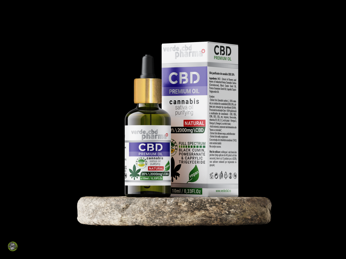“Help+” 20% de la Verde ® CBD Pharma, reprezinta un extract din canepa autentic care este purtat de chimenul negru, organic, biodinamic care ofera o biodisponibilitate crescuta. Un concentrat de ulei din plante intregi, continand fitocanabinoizi naturali esentiali organismului. Aceasta tinctura concentrata ofera cantitati standardizate cu cei mai importanti compusi si fitocanabinoizi. Produsele Verde CBD Pharma au o concentratie semnificativa de fitocanabinoizi – CBD, CBG, CBN, CBC, CBL, terpene, flavonoide, vitamina B1, B2, C, E, acizi grasi – Omega-3, Omega-5, Omega-6, etc., toate acestea oferind un efect tonic, revitalizant, complet. Totodata, continutul de acid octanoic, cunoscut si sub denumirea de “hrana a creierului”, ofera revitalizare generala cu efect antistres si un plus de memorie si concentrare. Mai mult, aditivarea produsului cu extract din chimen negru (Nigella Sativa) de cea mai buna calitate, are un continut ridicat de antioxidanti, in special, uleiul este bogat in timochinona, care are efecte antioxidante si antiinflamatoare puternice. Ca rezultat, studiile sugereaza ca acest compus poate proteja sanatatea creierului si cresterea de absorbtie a tuturor canabinoizilor prezenti in produs. In plus, extractul din rodie, ofera efect regenerant si de anti-imbatranire. Beneficiati de un somn mai calitativ si mai putina anxietate, de o recuperare imbunatatita post-antrenament si castig a masei musculare atunci cand va antrenati. De asemenea, promoveaza productia de colagen in corpul dumneavoastra, o proteina vitala care joaca un rol important in a va oferi o piele si muschi tonifiati. Cu o utilizare regulata, uleiul CBD ofera corpului capacitati de autoregenerare si intretinere, oferindu-va in acelasi timp puterea pentru antrenament sustinut sau competitii sportive. Conceptul Verde CBD Pharma va permite sa va bucurati oriunde si oricand de toate beneficiile canabinoizilor si a tuturor suplimentelor purtatoare deoarece nu contin THC.